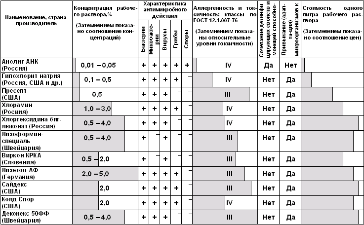 В таблице 1 показаны сравнительные характеристики электрохимически активированного анолита АНК, полученного в установках СТЭЛ и традиционных химических препаратов для дезинфекции и стерилизации.
